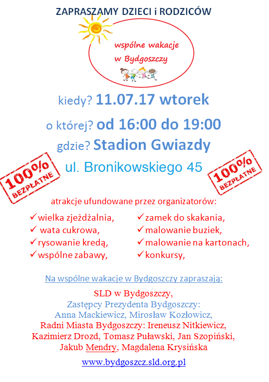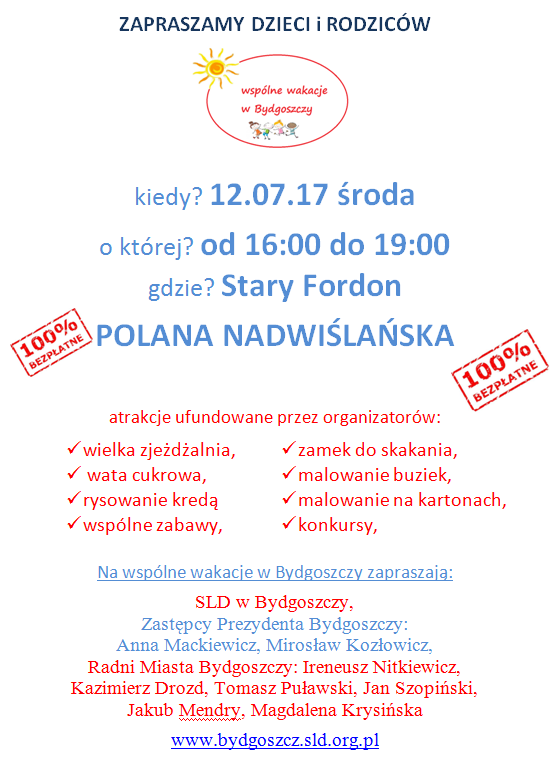 SLD Bydgoszcz zaprasza na festyny rodzinne – Wspólne wakacje SLD Bydgoszcz zaprasza na festyny rodzinne – Wspólne wakacje