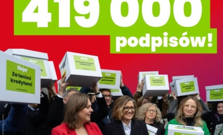 Przed siedzibą Państwowej Komisji Wyborczej i Krajowego Biura Wyborczego pojawiła się dziś grupa działaczy Lewicy z kartonami zawierającymi karty z podpisami poparcia dla kandydatki Lewicy na urząd Prezydenta RP Magdaleny Biejat. W całym kraju zebrano 419 tysięcy podpisów.