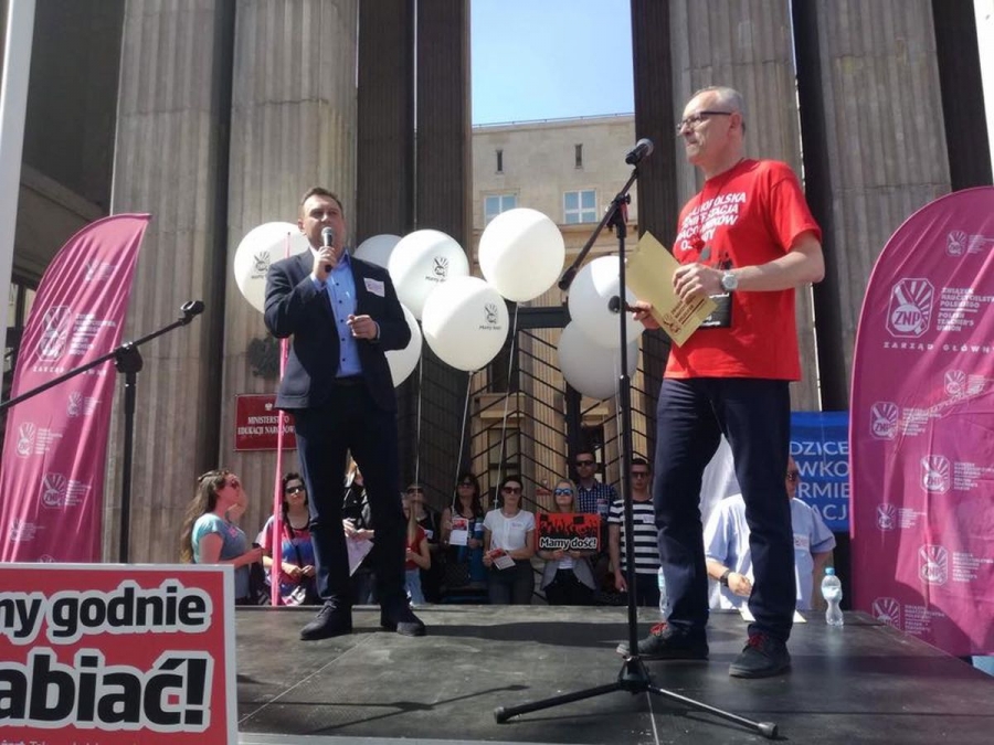 "Minister twierdzi, że na podwyżki wystarczyć miała zwiększona w tym roku subwencja oświatowa. Tyle że Łódź, która dostała 600 milionów od MEN, co roku na edukację wydaje ponad miliard! Dokładamy z własnej kieszeni, bo inaczej musielibyśmy powiedzieć uczniom, że, np. szkoły nie będą oświetlane i ogrzewane, a nauczyciele od sierpnia nie dostaną już wypłaty, bo subwencja z MEN-u właśnie się skończyła" - mówił podczas protestu Tomasz Trela.