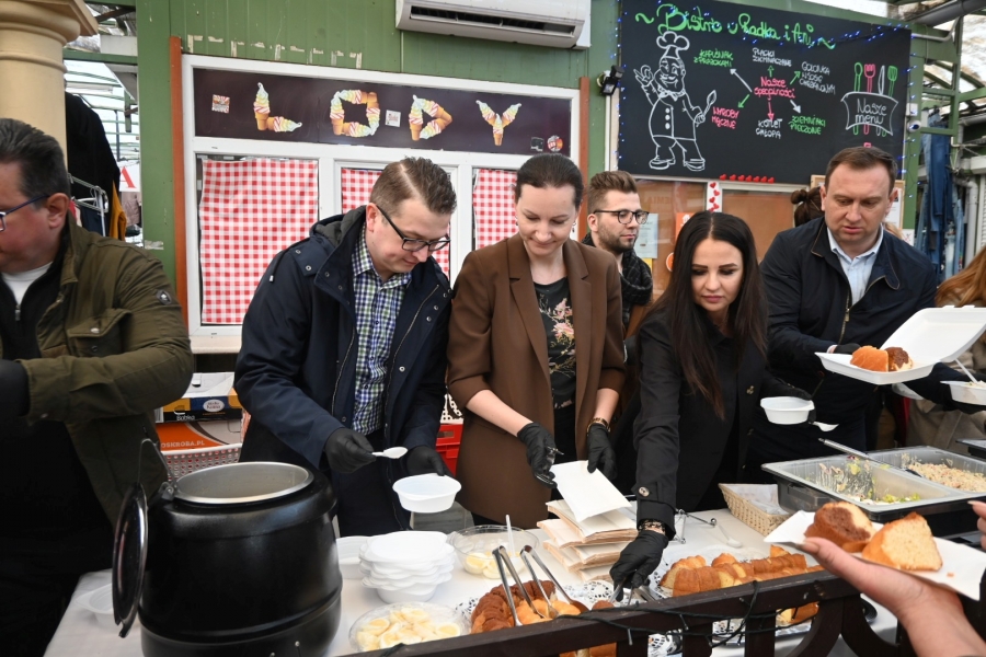 Wśród świątecznych dań nie zabrakło żurka z jajkiem, sałatki jarzynowej, sałatki wielkanocnej oraz typowych ciast wielkanocnych. Poczęstunek, jak co roku, cieszył się dużym zainteresowaniem łodzianek i łodzian, dokonujących ostatnich przedświątecznych zakupów.