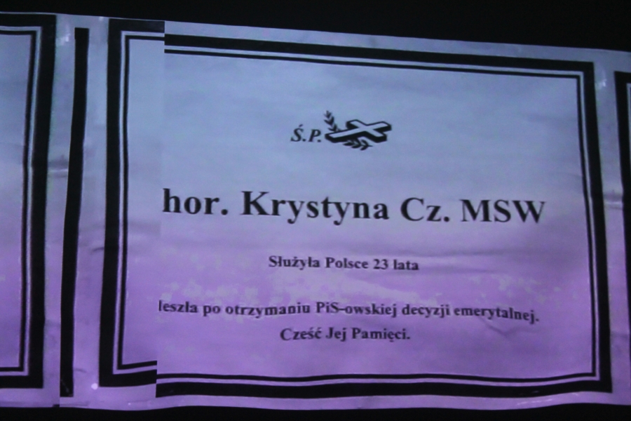 Nawiązuje on  do  desperackiej śmierci  w tym samobójstw 58 funkcjonariuszy służb  mundurowych z okresu PRL, a  w wielu wypadkach nawet kilku czy kilkunastu lat  ich pracy już w wolnej Polsce. Odebrali sobie życie, lub zmarli na skutek załamania psychicznego  po wprowadzeniu przez władze  PiS ustawy obniżającej   do minimum emerytury wszystkim  pracownikom  tych służb czyli ponad   50 tysiącom osób. Dla niektórych  była protestem dyktowanym honorem i godnością. Nastąpiło to na podstawie zastosowania zbiorowej odpowiedzialności czyli  legislacyjnego bezprawia. Filmowy dokument podaje przykłady  ofiar zatrudnionych nie tylko w organach bezpieczeństwa czy milicji lecz także straży granicznej czy osób będących zwykłymi urzędnikami w służbach mundurowych. Rządzący, w tym prezydent Andrzej Duda podczas ostatniej kampanii wyborczej nazywali  ,,Ustawę śmierci” aktem  sprawiedliwości,, za służbę obcemu mocarstwu”.